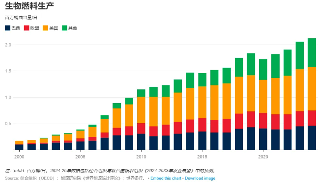 新兴市场国家青睐更高混合比例的生物燃料,可能导致生物燃料的需求增长超出预期,从而推高谷物、植物油和糖等原料的价格。